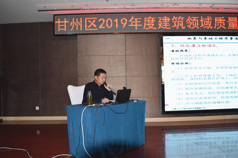 2月21日,2019年張掖市甘州區(qū)建筑領(lǐng)域質(zhì)量、安全生產(chǎn)及應(yīng)急管理培訓(xùn)班在甘州區(qū)舉辦,我公司副總經(jīng)理安貴倉(cāng)同志、結(jié)構(gòu)抗震所所長(zhǎng)劉恒鎮(zhèn),以及結(jié)構(gòu)抗震所王艷森、建材分院張穎異兩位技術(shù)人員應(yīng)邀作了為期一天的技術(shù)講座,內(nèi)容主要涉及工程質(zhì)量通病防治、建筑工程結(jié)構(gòu)可靠性、建筑隔震技術(shù),以及外墻保溫施工工藝和技術(shù)管控等幾個(gè)專(zhuān)業(yè)領(lǐng)域。甘州區(qū)內(nèi)的所有施工單位、監(jiān)理單位、商砼站等建設(shè)領(lǐng)域的相關(guān)單位共350人參加。