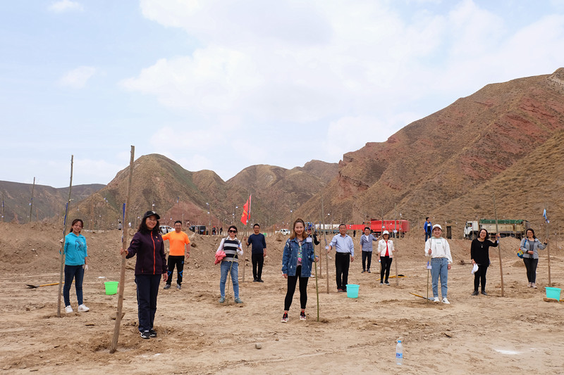 大家頂著烈日,面對(duì)堅(jiān)硬的土夾石土質(zhì),锨挖手刨,互相幫助,每人都種下了一棵樹(shù),以親身經(jīng)歷體會(huì)到了“八步沙六老漢先進(jìn)群體治沙”的艱難卓絕。同時(shí)也以實(shí)際行動(dòng)踐行習(xí)總書(shū)記“綠水青山就是金山銀山”的發(fā)展理念和“眾人拾柴火焰高,眾人植樹(shù)樹(shù)成林”的講話(huà)精神。
