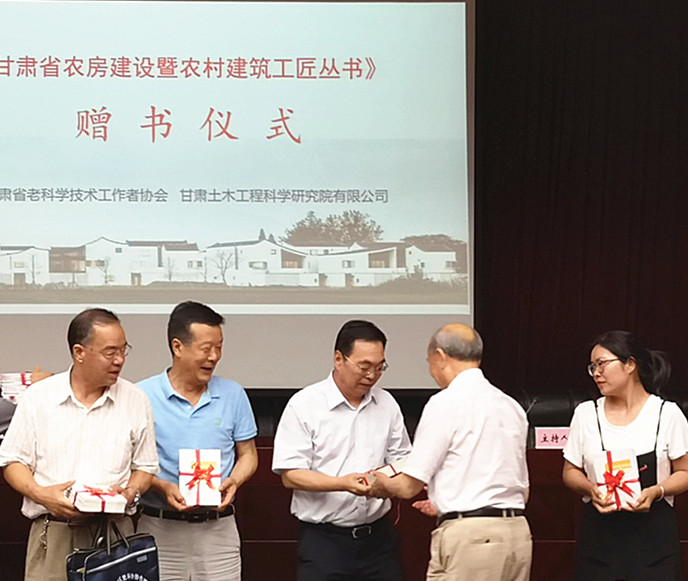 由我公司和甘肅省老科學技術工作者協(xié)會共同主編完成的《甘肅省農(nóng)房建設暨農(nóng)村建筑工匠叢書》(以下簡稱《叢書》)于2019年7月正式出版發(fā)行,并于7月30日在蘭州舉行了贈書儀式。甘肅省科協(xié)、省市發(fā)改、資源、環(huán)保、住建、工信、科技、墻改等政府部門的代表,以及甘肅省土木建筑協(xié)會、省建材行業(yè)協(xié)會等相關協(xié)會的代表共120多人參加了本次儀式。甘肅省老科學技術工作者協(xié)會會長劉祖和和公司黨委書記、董事長、總經(jīng)理董紅健為大家進行現(xiàn)場贈書。