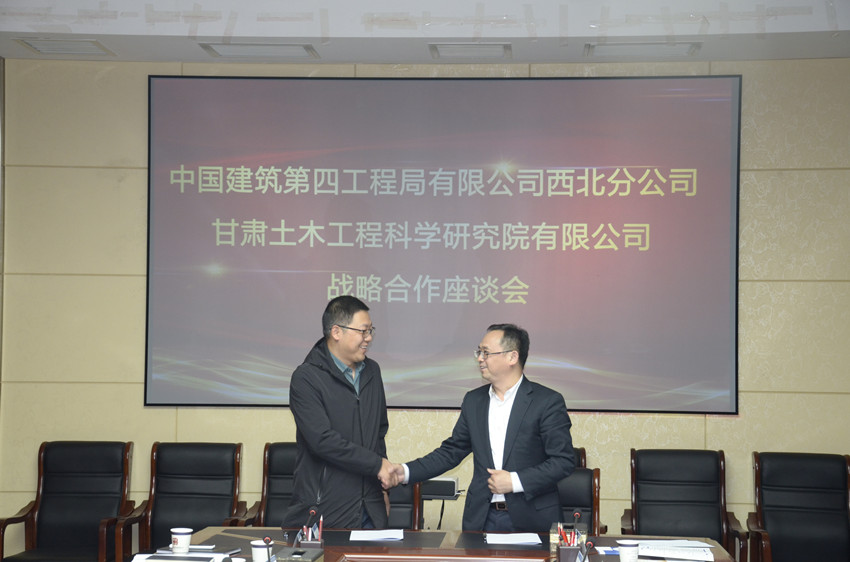 何江紅董事長表示中國建筑第四工程局有限公司西北公司在西北五省區(qū)、內(nèi)蒙古、山西等地區(qū),擔負“開拓西北事業(yè)、構(gòu)筑四局品牌”的重大使命,強勢開拓以西安、蘭州為中心的核心區(qū)域市場。依托中建集團及中建四局雄厚的資金、技術(shù)、人才資源和管理優(yōu)勢,大力發(fā)展基礎(chǔ)設施、高端房建、投資建造等領(lǐng)域,不斷增強誠信履約能力,努力展現(xiàn)新作為、彰顯新?lián)?、展示新形象。甘肅土木工程科學研究院有限公司作為西北地區(qū)土木工程建設領(lǐng)域?qū)I(yè)門類齊全、科研特色鮮明、資質(zhì)等級較高、技術(shù)優(yōu)勢領(lǐng)先、綜合實力雄厚的國有建筑科研高新技術(shù)企業(yè)。中國建筑第四工程局有限公司西北公司愿與甘肅土木工程科學研究院有限公司通過雙方更廣領(lǐng)域、更深層次和更高水平的合作,實現(xiàn)資源共享、優(yōu)勢互補、互利共贏,促進企業(yè)高質(zhì)量發(fā)展。