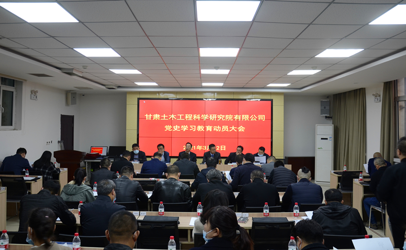 3月12日,公司黨委召開黨史學(xué)習(xí)教育動員大會,傳達學(xué)習(xí)習(xí)近平總書記在黨史學(xué)習(xí)教育動員大會上的重要講話精神、全省黨史學(xué)習(xí)教育動員大會精神以及省政府國資委、集團股份公司黨史學(xué)習(xí)教育動員大會會議精神。黨委書記、董事長董紅健主持會議并作動員講話,對公司黨史學(xué)習(xí)教育工作作了安排部署。黨委副書記、監(jiān)事會主席、工會主席張磊宣讀了《中共甘肅土木工程科學(xué)研究院有限公司委員會黨史學(xué)習(xí)教育實施方案》。公司黨委委員、紀委委員、各黨支部支部委員和黨員中層干部等參加會議。