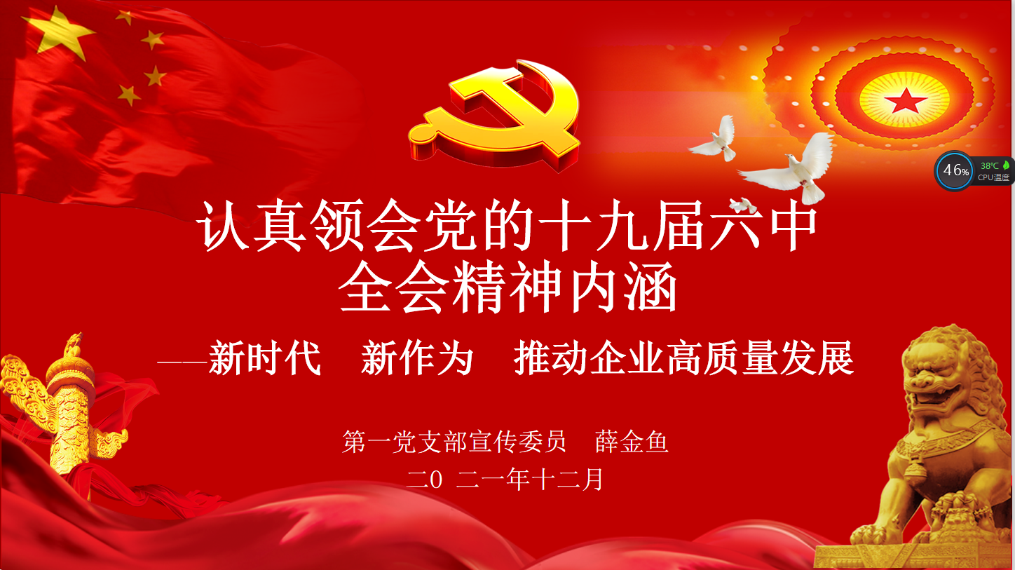 通過本次專題黨課學習,支部希望黨員同志們能夠進一步領(lǐng)會十九屆六中全會精神,以史為鑒,開創(chuàng)未來,堅持求真務(wù)實、與時俱進、苦干實干、立足崗位把工作做的更好、為公司高質(zhì)量發(fā)展做出應(yīng)有貢獻。