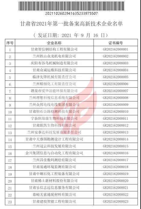 甘肅省水利水電勘測設(shè)計(jì)研究院有限責(zé)任公司中標(biāo)甘肅省引洮供水二期配套城鄉(xiāng)供水信息化專項(xiàng)工程方案、招標(biāo)設(shè)計(jì)及施工圖設(shè)計(jì)項(xiàng)目;平?jīng)鍪谐缧趴h棗林溝水庫工程;萬州區(qū)魚背山水庫大壩安全評估報(bào)告編制;協(xié)合拉引水樞紐、秋格爾引水樞紐、英爾引水樞紐安全評價項(xiàng)目。中標(biāo)蘭州中川機(jī)場三期擴(kuò)建供油工程項(xiàng)目機(jī)坪航站區(qū)工程勘察。甘肅省建設(shè)監(jiān)理有限責(zé)任公司中標(biāo)省政府為民實(shí)事保障性租賃住房項(xiàng)目監(jiān)理。甘肅省建設(shè)監(jiān)理有限責(zé)任公司根據(jù)《高新技術(shù)企業(yè)認(rèn)定管理辦法》和《高新技術(shù)企業(yè)認(rèn)定管理工作指引》有關(guān)規(guī)定,全國高新技術(shù)企業(yè)認(rèn)定管理工作領(lǐng)導(dǎo)小組辦公室于10月26日正式公布了甘肅省2021年第一批備案的294家高新技術(shù)企業(yè)名單,建設(shè)監(jiān)理公司榜上有名,被評定為“高新技術(shù)企業(yè)”。