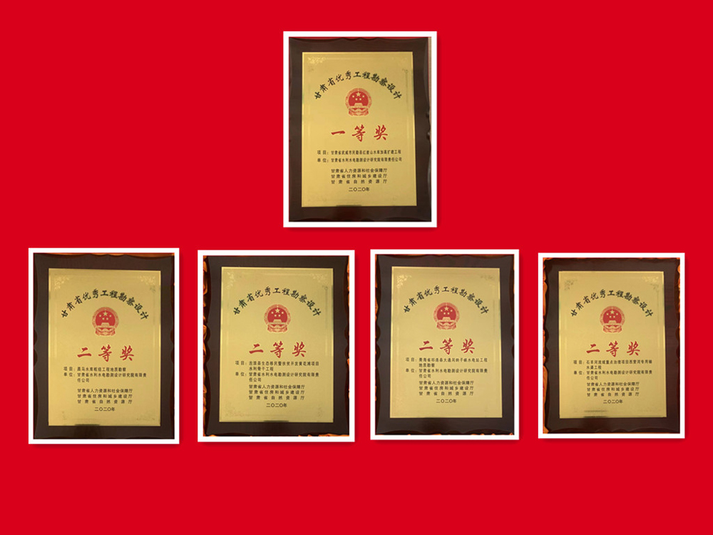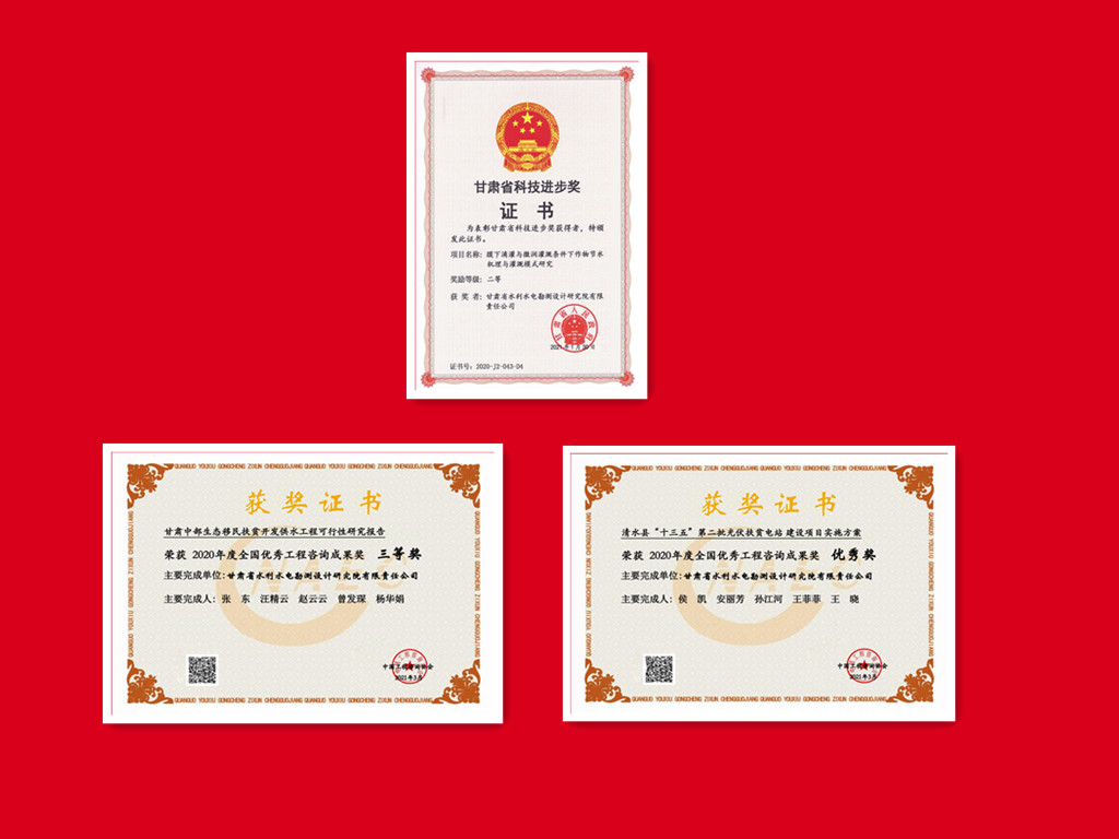 科研成果在工程實(shí)踐中開(kāi)花結(jié)果,多個(gè)項(xiàng)目獲技術(shù)表彰獎(jiǎng)勵(lì):《民勤縣紅崖山水庫(kù)加高擴(kuò)建工程》獲甘肅省優(yōu)秀工程勘察設(shè)計(jì)一等獎(jiǎng);《石羊河流域重點(diǎn)治理項(xiàng)目西營(yíng)河專用輸水渠工程》《古浪縣生態(tài)移民暨扶貧開(kāi)發(fā)黃花灘項(xiàng)目水利骨干工程》《大通河納子峽水電站工程地質(zhì)勘察》《昌馬水庫(kù)樞紐工程地質(zhì)勘察》分別獲甘肅省優(yōu)秀工程勘察設(shè)計(jì)二等獎(jiǎng);《甘肅中部生態(tài)移民扶貧開(kāi)發(fā)供水工程可行性研究報(bào)告》獲全國(guó)優(yōu)秀工程咨詢成果獎(jiǎng)三等獎(jiǎng);《清水縣“十三五”第二批光伏扶貧電站項(xiàng)目》獲全國(guó)優(yōu)秀工程咨詢成果獎(jiǎng)優(yōu)秀獎(jiǎng)。