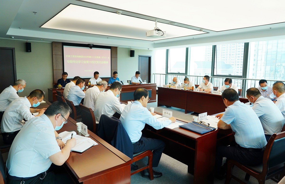 6月2日,甘肅工程咨詢集團召開黨委(擴大)會議,專題傳達學習中國共產黨甘肅省第十四次代表大會精神。會議由黨委書記、董事長宋忠慶主持,集團公司黨委委員,財務總監(jiān)、董事會秘書,機關各部門負責人;各子公司黨委書記、董事長(執(zhí)行董事)參加會議。