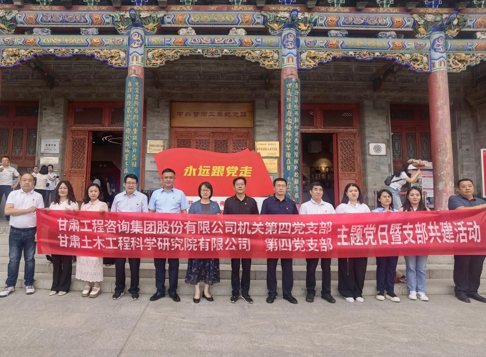 為慶祝中國(guó)共產(chǎn)黨成立103周年,7月1日,集團(tuán)公司機(jī)關(guān)第四黨支部與土木工程院第四黨支部赴中共甘肅工委紀(jì)念館開展“七一”主題黨日暨支部共建活動(dòng)。集團(tuán)公司黨委副書記、董事王春燕,黨委宣傳部(黨群工作部)部長(zhǎng)、機(jī)關(guān)黨委副書記丁永升,黨委宣傳部(黨群工作部)副部長(zhǎng)、機(jī)關(guān)黨委書記金生磊,集團(tuán)公司機(jī)關(guān)第四黨支部黨員,土木工程院黨委書記、監(jiān)事會(huì)主席、工會(huì)主席張磊,黨委委員、紀(jì)委書記張健,土木工程院第四黨支部部分黨員及發(fā)展對(duì)象參加了本次活動(dòng)。