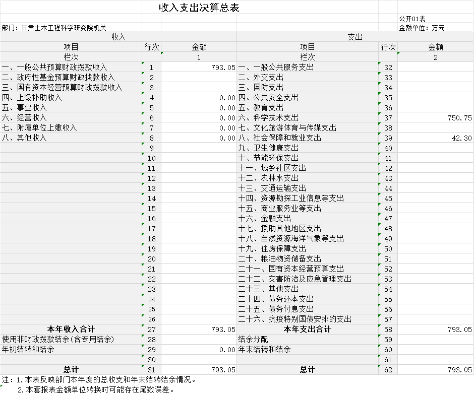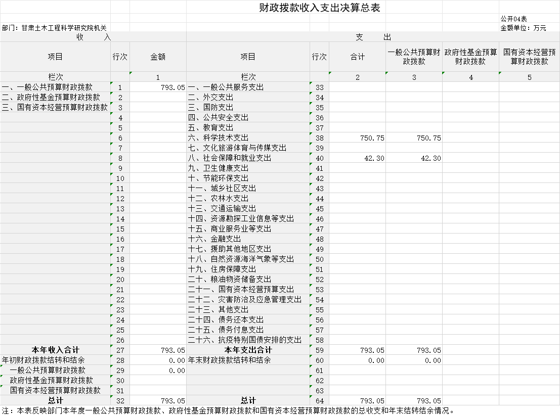 2023年度財政撥款收、支總計均為793.05萬元。與上年相比,各增加0.94萬元,增長0.12%。主要原因是社會保障和就業(yè)收、支較上年增加0.94萬元。其中:科研機構(gòu)人員經(jīng)費504.88萬元,占比63.66%;公用經(jīng)費288.17萬元,占比36.34%。