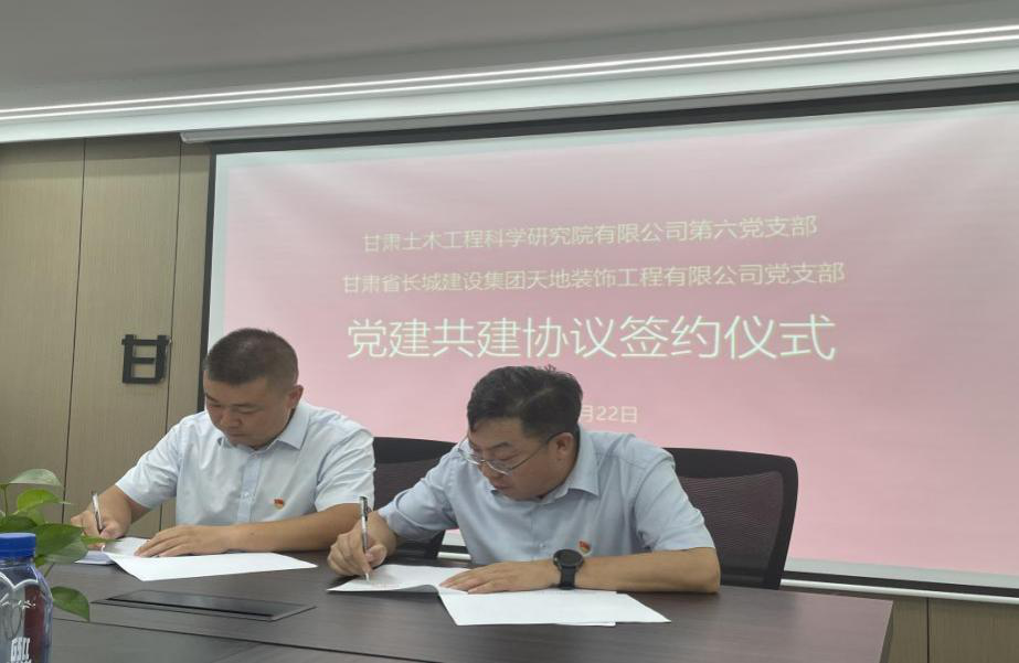 為深入學(xué)習(xí)貫徹黨的二十屆三中全會精神,加強基層黨建工作,2024年8月22日,公司第六黨支部與甘肅省長城建設(shè)集團(tuán)天地裝飾工程有限公司黨支部以甘肅省機關(guān)事務(wù)管理局房屋統(tǒng)建管理中心所屬“原重點工程公安局辦公樓維修改造項目”為載體,在長城建設(shè)集團(tuán)開展了“黨建共建”活動,雙方開展座談交流并舉行了黨建共建協(xié)議簽約儀式。