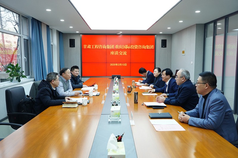 孟康榮對賓世清一行的來訪表示歡迎,并介紹了集團(tuán)公司發(fā)展歷程、業(yè)務(wù)建設(shè)、資質(zhì)資信、優(yōu)勢技術(shù)、市場拓展、募投項(xiàng)目等情況。他表示,甘肅工程咨詢集團(tuán)是省委省政府組建成立的工程技術(shù)產(chǎn)業(yè)集團(tuán),長期為全省經(jīng)濟(jì)社會發(fā)展和重大工程建設(shè)提供技術(shù)支撐。重慶國際投資咨詢集團(tuán)是重慶市市屬重點(diǎn)國有企業(yè)、大型綜合性咨詢產(chǎn)業(yè)集團(tuán)。雙方在決策咨詢、全過程工程咨詢、招標(biāo)代理、綠色低碳、數(shù)字化等領(lǐng)域合作空間廣闊,希望雙方發(fā)揮優(yōu)勢資源、深化同業(yè)合作、實(shí)現(xiàn)互利共贏。