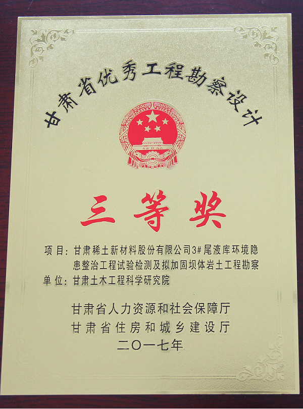 2.獲2017年度甘肅省優(yōu)秀工程勘察設(shè)計(jì)三等獎(jiǎng)。