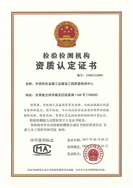 中國有色金屬工業(yè)建設(shè)工程質(zhì)量檢測中心自1995年初次通過國家級(jí)檢驗(yàn)檢測機(jī)構(gòu)資質(zhì)認(rèn)定,法律地位明確,組織機(jī)構(gòu)健全,人員能力、儀器設(shè)備配置、場所環(huán)境條件等均滿足檢驗(yàn)檢測工作要求。具備建筑材料、巖土工程、工程結(jié)構(gòu)、建筑節(jié)能、室內(nèi)環(huán)境、鋼結(jié)構(gòu)檢測能力,通過了17類產(chǎn)品,147個(gè)參數(shù)的檢測能力認(rèn)定。期間經(jīng)歷多次監(jiān)督評(píng)審、換證復(fù)評(píng)審,持續(xù)有效運(yùn)行25年。