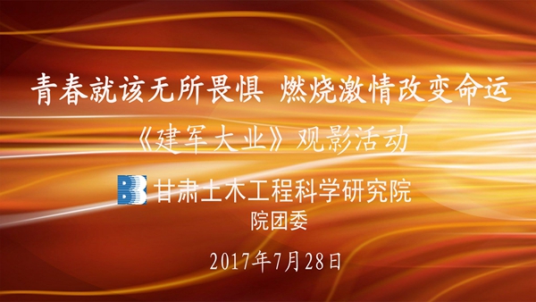 為紀(jì)念中國(guó)人民解放軍建軍90周年,銘記我軍的光輝歷史,豐富職工文化生活,我院團(tuán)委于7月28日組織全院職工觀看電影《建軍大業(yè)》。我院章海峰院長(zhǎng)、鄭建軍副院長(zhǎng)與182位職工參加了本次觀影活動(dòng)。